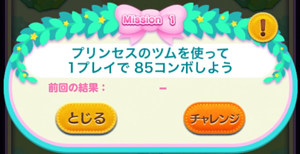 「プリンセスのツムを使って1プレイで85コンボしよう」を攻略するための情報をお伝えします。